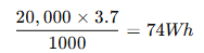 예를 들어, 20,000mAh(3.7V 기준) 보조배터리는