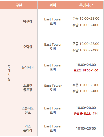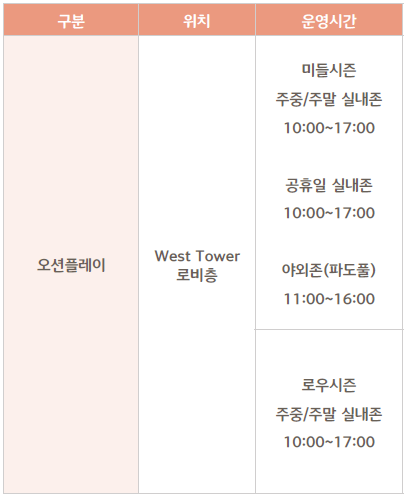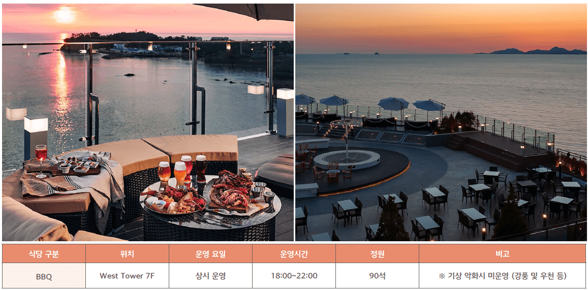 ○ 부대시설 : 식음업장 9개 / 오션플레이 / 스크린골프장 / 키즈플레이 등