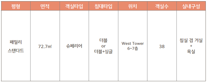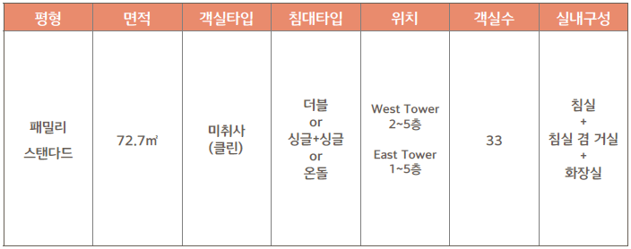 ○ 패밀리 스탠다드 (클린) : 총 33실 / 정원 4인 (최대 6인)