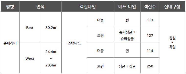 ○ 슈페리어 스탠다드 : 총 604실 / 정원 2인 (최대 3인)
