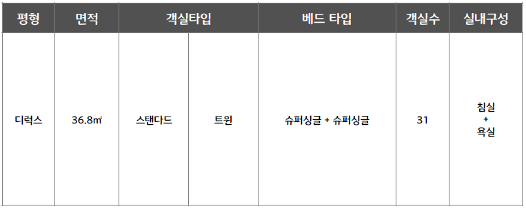 ○ 디럭스 스탠다드 : 총 31실 / 정원 2인 (최대 3인)