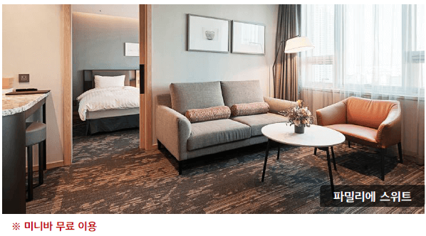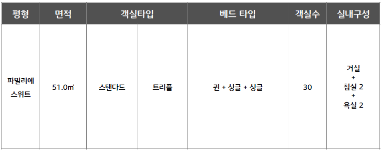○ 파밀리에 스위트 : 총 30실 / 정원 4인 (최대 4인)