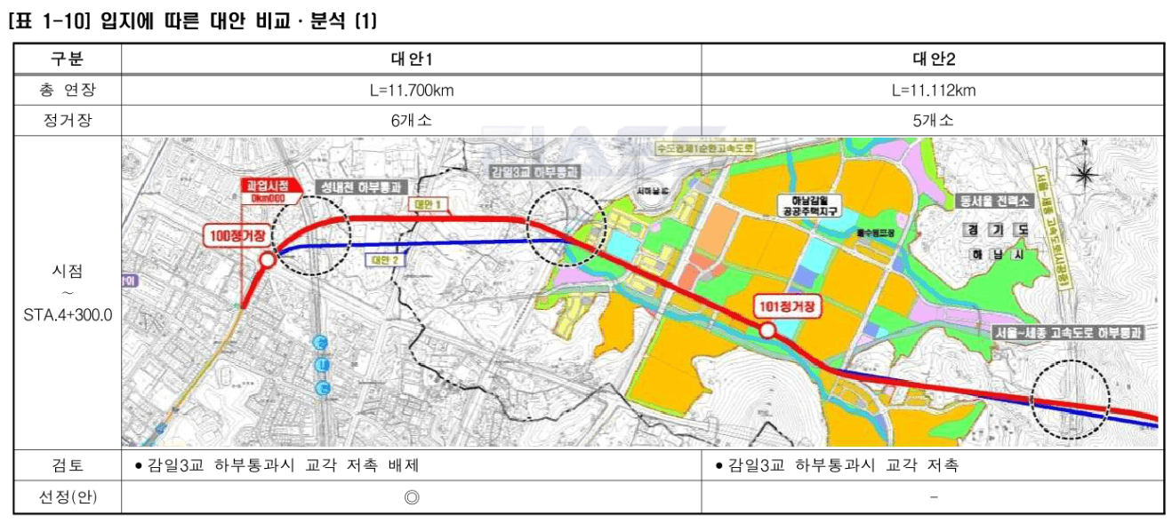 "송파하남선 기본계획 (감일역 위치, 교산역, 신덕풍역)"