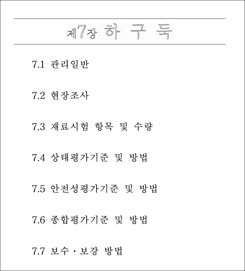 이번 글에서는 "시설물의 안전 및 유지관리 실시 세부지침(안전점검,진단 편)"에 대해서 살펴보겠습니다. '시설물의 안전 및 유지관리 실시 세부지침'은 국토교통부(국토안전관리원)에서 '시특법 (시설물의안전 및 유지관리에 관한 특별법)'과 관련하여 안전점검 및 안전진단에 활용하기 위한 목적으로 출간한 자료입니다.