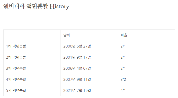 ※ 엔비디아 액면분할 역사가 궁금하시면 다음 글을 확인하세요.
