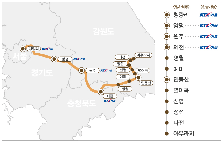| 정선 | 11:53 | 11:56 | 원주 | 20:37 | 20:39 |