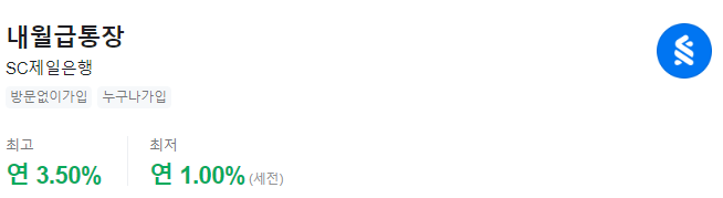 3. SC제일은행 [내월급통장]
