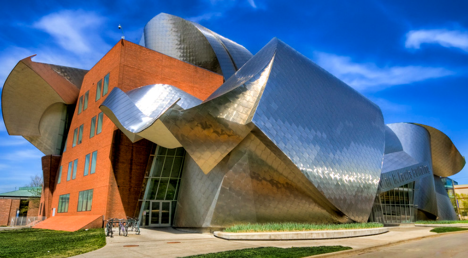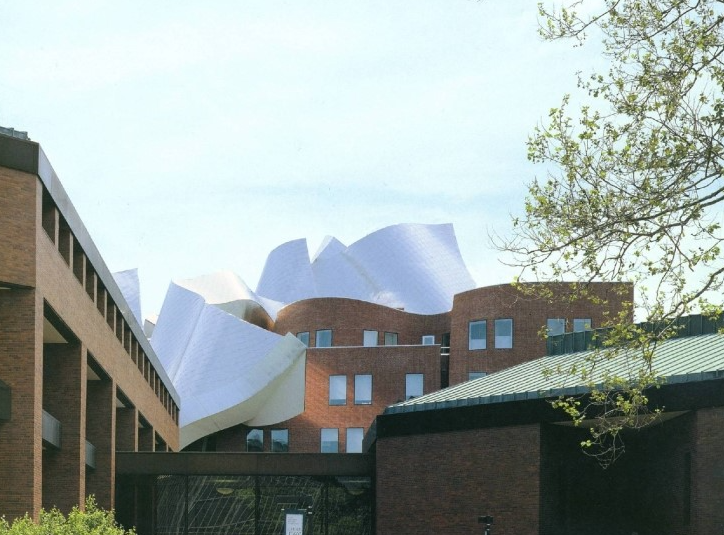 2002년 클리블랜드에 있는 케이스 웨스턴 리저브 대학교의 경영대학 건물로, Gehry의 독특한 디자인 언어를 교육 환경에 적용한 예입니다. 복잡한 곡선과 불규칙한 형태가 특징입니다.