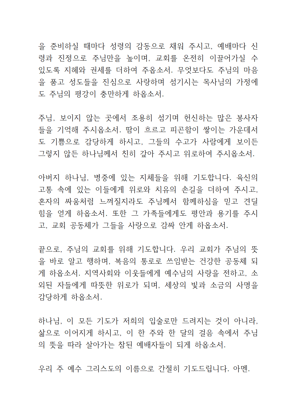 '2025년 8월 첫째주일 낮 예배 대표기도문 모음'