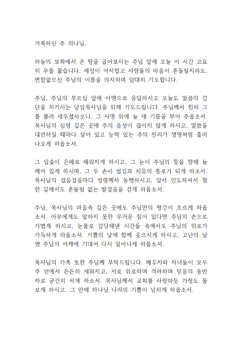 담임목사님을 위한 기도문
