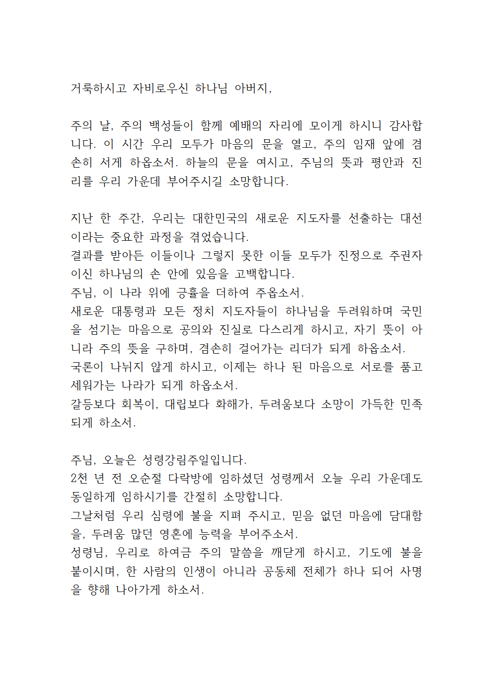 '6월 주일예배 대표기도문 모음 (pdf 첨부)'